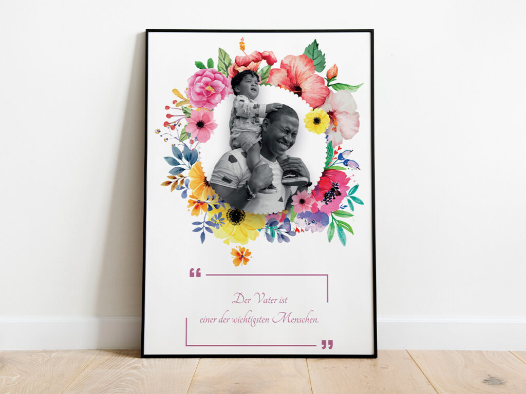 Ein Plakat für ein Projekt namens „Greifswalder Väter.“ Hier habe ich mit Pixelfotos mit Photoshop dem Thema entsprechend zugeschnitten, freigestellt und farblich angepasst. Die einzelnen Elemente habe ich dann zu einen Plakat zusammengefügt, welches die Emotionen zwischen Vater und Kind ausdrückt.